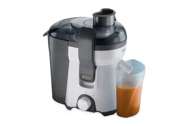 Capacidad para 1,25 lts con separador de espuma, su boca de alimentación es dos veces más grande. Cuenta con accesorios removibles, dos velocidades + pulso que permiten extraer el jugo tanto de ingredientes blandos como duros y brazo de seguridad en acero inoxidable garantizando que el extractor solo funcione cuando está cerrado.