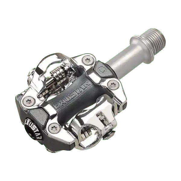 Un pedal de montaña que cuenta con enganche por ambos lados EPS-M compatible con Shimano SPD, cuerpo en aluminio ligero y resistente, eje en acero Cr-Mo templado y maquinado CNC, rodamiento sellado y LSL, medida de 82 x 65 mm, 324 g/par.