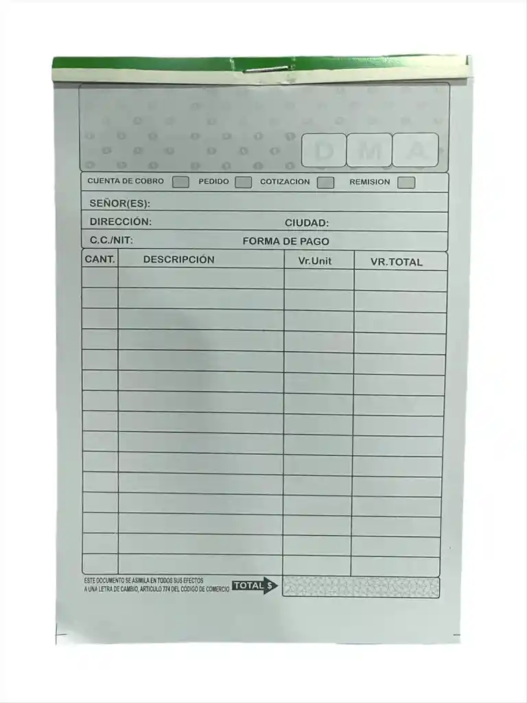 Facturero Autocopiante 1/32 Medidas 16x11 Cm