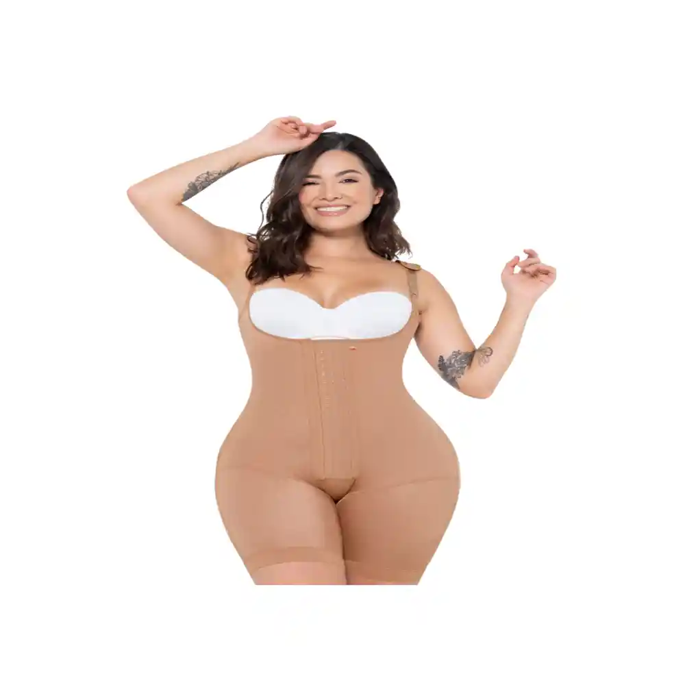 FAJA POSTQUIRURGICA MEDIA PIERNA ABERTURA PERINEAL Y TANGA COLOR MOKA TALLA L 36