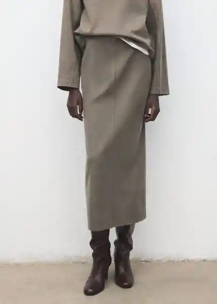 Abertura Posterior en el Bajo Cintura Con Goma Elástica Diseño Lápiz Diseño Midi Sin Cierre Tiro Medio Total Look - 27061287_35.