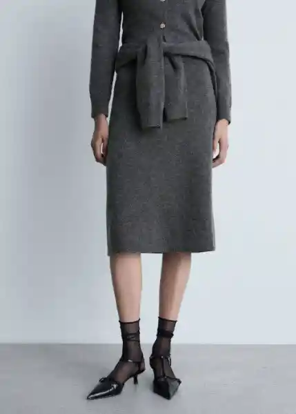 Cintura Elástica, Diseño Evasé, Diseño Midi, Punto Medio, Tejido Mezcla de Lana, Total Look - 77057701_92.