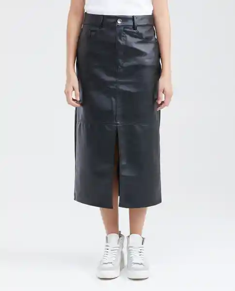 Silueta Ajustada, Tiro Alto y Largo Midi.Diseño 5 Bolsillos Con Pretina Tradicional Con Botón Metálico, Cierre, Bolsillos Delanteros, Relojera, Corte Frontal a la Mitad Del Muslo, Abertura Triangular en el Frente y Bolsillos Traseros de Parche.Elaborada en Mezcla Textil Efecto Cuero. Ean - 741G000NEG194004 PLU- 1111133065060.