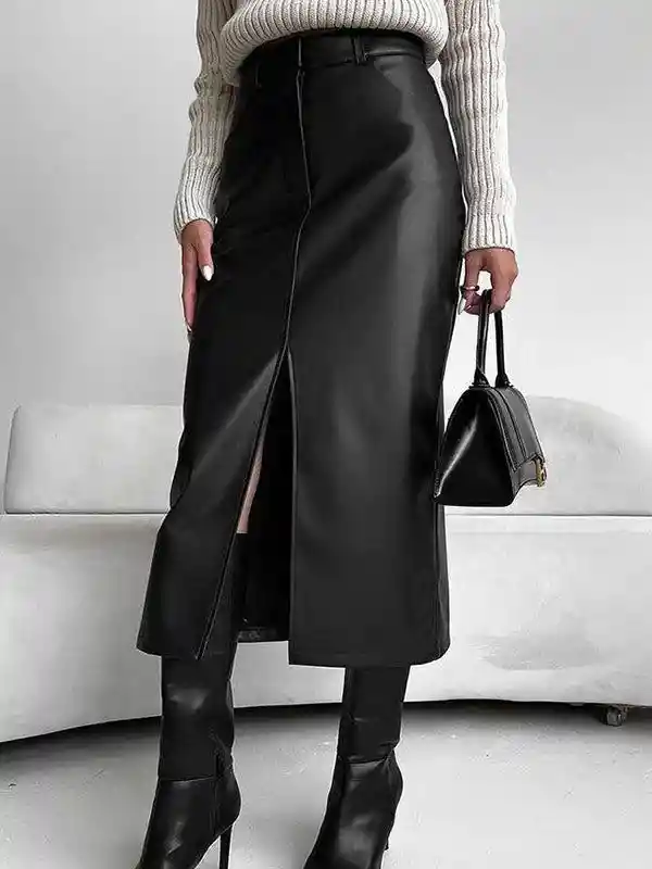 Falda larga en cuero sintético cómoda con pretinas