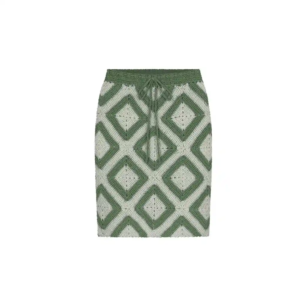 Falda en hilo acrílico tejida a mano en crochet, cordón ajustable a la cintura, por su tejido se estira para mayor comodidad al cuerpo. Te garantizamos una prenda única y hecha exclusivamente para ti. Además de apoyar a mujeres cabeza de hogar expertas en el tejido crochet apoyas el consumo consciente hecho en Colombia. Falda 100% tejida a mano. ideal para llevar con nuestros tops, en clima caliente o en la playa TALLA ÚNICA 40cm Largo x 41cm Ancho