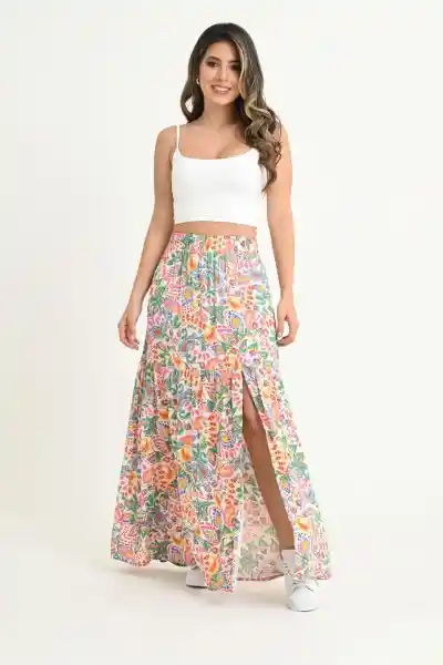 Larga en Chalís Estampado Pretina Con Elástico Línea a Con Corte y Abertura Lateral.