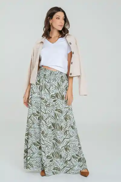 Larga en Tejido Plano Estampado Talle Alto Pretina de 5 cms Resortada en Nido de Abeja Bolsillos en Los Laterales de la Forro Interno Ruedos de 0.8 mm Silueta Semi Ajustada.