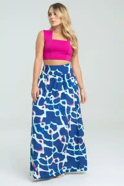 Larga en Tejido Plano Estampado Talle Alto Pretina de 10 cm Cierre Semi Invisible Tono a Tono en el Costado Izquierdo Bolsillos en Los Laterales de la Falda Forrada Silueta Semi Ajustada.