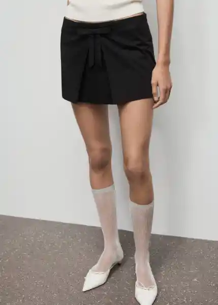 Cierre de Cremallera Lateral Diseño Falda Pantalón Diseño Mini Forro Interior Lazo Decorativo Pliegue en la Parte Delantera Tejido Mezcla de Algodón Tiro Bajo - 17094790_99.