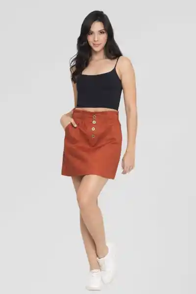 Corta en Dril Fondo Entero Bolsillos en Delantero y Posterior Botones Frontal Elástico en Pretina Con Recogido.