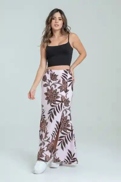 Larga en Chalis Estampado Pretina Incluida Con Cierre en Costado Acampanada en Ruedo Forro Interno en Chalis Fondo Entero.