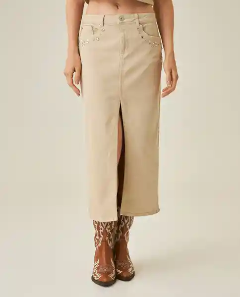 Falda Midi Femenina Denim en Algodón 99% y Elastano 1%. Dos Bolsillos Delanteros Bolsillo Relojera en Vista Derecha. Piedras Decorativas en Vistas Frente. Dos Bolsillos de Parche Posterior. Garra Cuero en Pretina. Botón en Pretina 8 Remaches. Construcción Midi Denim Con Piedras Brillantes. Elongación Aproximada: 2%. Ean- 441H000Cru130000 Plu- 1111133231571.