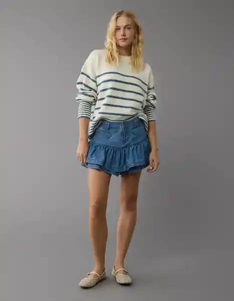 Tejido de Mezcla de Algodón Con un Toque de Elasticidad. Cremallera y Trabillas Para Cinturón Bolsillos Frontales Welt Falda Con Volantes.