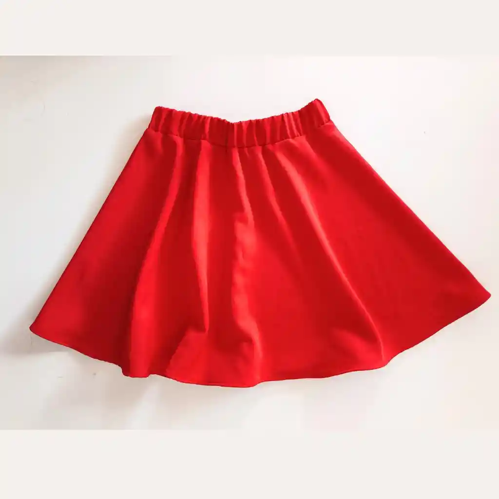 Falda rotonda en color rojo, con elástico en la cintura. Última unidad disponible, en talla 16. Tiene 75 cms. de cintura y 40 cms. de largo. Ideal para disfraces.