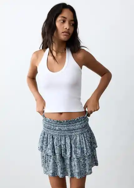 Diseño Corto Diseño Estampado Diseño Evasé Panel Fruncido en la Cintura Tejido Fluido - 27055816_56.
