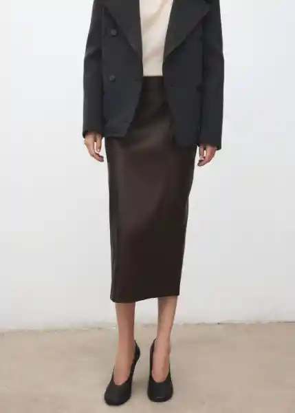 Abertura Posterior en el Bajo Cierre de Cremallera Lateral Diseño Lápiz Diseño Midi Efecto Piel Tiro Medio - 17037779_32.