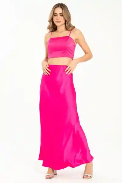 Midi en Satín Fondo Entero Elástico en Pretina Falda Con Vuelo.