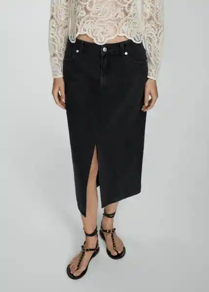 Abertura en el Bajo Parte Delantera, Cierre de Cremallera y Botón, Cinco Bolsillos, Diseño Midi, Diseño Recto, Tejido de Algodón Estilo Tejano Vaquero, Trabillas - 77054786_Tn.