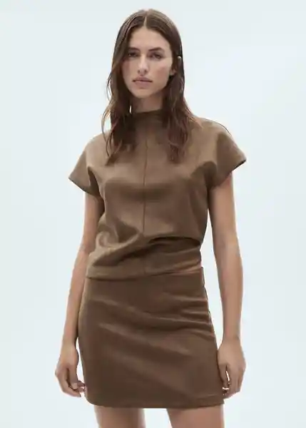 Cintura Con Goma Elástica Diseño Corto Diseño Recto Efecto Piel la Modelo Mide 179 y Lleva Una Talla S/36 Sin Cierre Tiro Medio Total Look - 17187759_Ta.