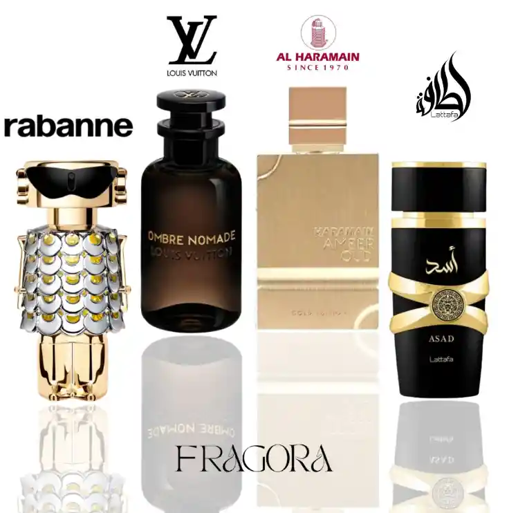Fame Rabanne | Amber Oud Gold | Ombre Nomade | Asad Lattafa ✨ 🔥 Cuatro fragancias de lujo que combinan audacia, sofisticación y misterio: 🌟 Fame Rabanne: Una fragancia moderna y atrevida, Fame captura la esencia de la sensualidad y el empoderamiento femenino. Con notas de jazmín, almizcle y vainilla, esta fragancia es un homenaje a la fuerza de la mujer contemporánea. 💃✨ 💫 Amber Oud Gold: Un perfume de lujo que combina el calor y la suavidad del ámbar con la intensidad del oud, creando una fragancia misteriosa, envolvente y sofisticada. Perfecta para aquellos que buscan dejar una huella inolvidable. 🌿🔑 🌙 Ombre Nomade: Una fragancia intrigante y misteriosa, Ombre Nomade se despliega con notas amaderadas, florales y almizcladas, para crear una experiencia olfativa única, que evoca la elegancia y la sofisticación del Oriente. 🌌💎 👑 Asad Lattafa: Con su impresionante mezcla de oud, especias y flores, Asad Lattafa es una fragancia potente y elegante, ideal para quienes buscan un perfume con carácter y presencia. Un clásico en el mundo del lujo. 🌿🔥 🎁 Un combo de lujo: Cuatro fragancias que evocan el poder, el misterio y la sofisticación. Desde lo más dulce y floral hasta lo más intenso y amaderado, este combo es perfecto para quienes buscan una experiencia olfativa única y llamativa. 💎🎀 🌟 Ideal para: Aquellos que quieren fragancias sofisticadas, misteriosas y llenas de carácter, que marcan la diferencia en cualquier ocasión. ✨👑