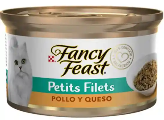 Comida húmeda para gato Purina® Fancy Feast® Petits Filets sabor a pollo y queso. Suculentos trocitos finamente combinados con un tierno paté. Alimenta a tu gato con una combinación del 60% de su alimento seco con un 40% de alimento húmedo de su preferencia. Eleva su experiencia gastronómica con una variedad de platillos gourmet preparados tal y como a él le gustan.
