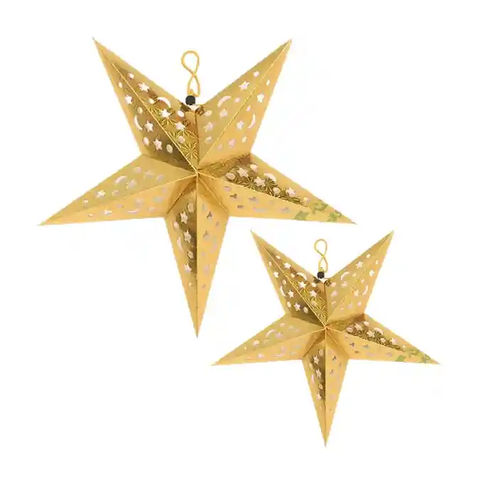 Descripción 2 estrellas Faroles Estrella dorados para navidad 1 de 60 cm de díametro 1 de 30 cm de diámetro Armable facil de usa y muy hermoseas, no ocupa espacio para su almacenamiento