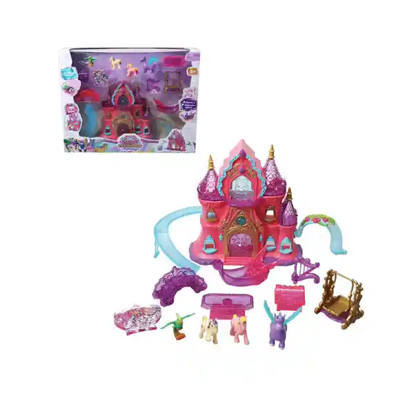 Contiene 15 Unidades. Precioso Castillo a Pilas Con Luces y Música. Incluye 6 Accesorios en Miniatura y 2 Ponny 1 Pájaro Para Construir el Castillo de Ensueño. Material no Tóxico Seguro Duradero Superficie Lisa Sin Rebabas Para Garantizar Que Los Dedos de Los Niños no se Rayen.*Baterías no Incluidas