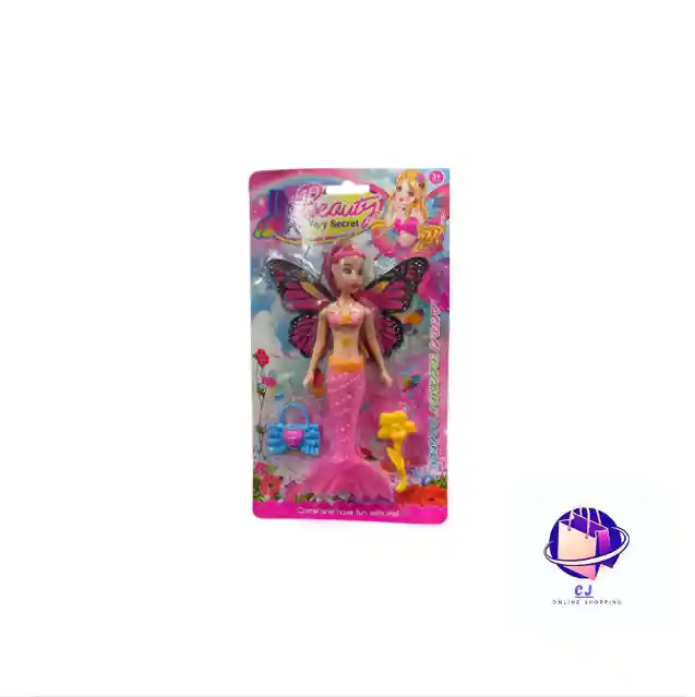 Muñeca Fairy Sirena con alas, con diseño mágico y colorido. Combina estilo de sirena y hada, con alas decorativas y detalles llamativos. Fabricada en material resistente y liviano, ideal para el juego y la imaginación de los niños.