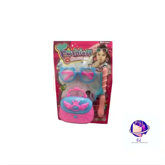 Divertido set de accesorios de belleza para niñas que incluye gafas, bolso y enchurcadora de juguete. Diseñado para juegos de moda y estilo, permitiendo a las niñas crear looks divertidos mientras desarrollan su imaginación. Sus piezas son coloridas, livianas y fabricadas en material resistente.