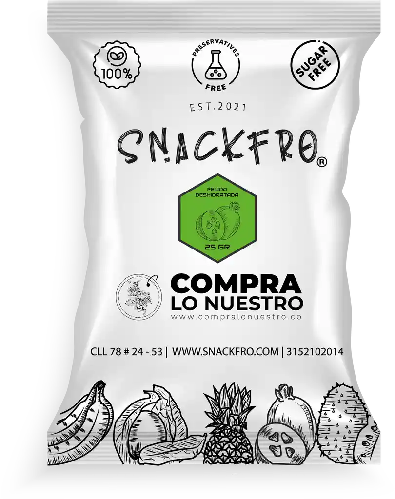 Explora la exótica frescura y el sabor inigualable de la feijoa con nuestro Feijoa Deshidratado 100% Natural de Snackfro. Cada bolsita de 25 gramos es un tributo a la naturaleza, elaborada con feijoas cuidadosamente seleccionadas y deshidratadas para ofrecerte un bocado lleno de autenticidad y sabor tropical. La Pura Esencia de la Feijoa: En Snackfro, nos comprometemos a brindarte lo mejor de la naturaleza sin compromisos. Nuestro Feijoa Deshidratado se produce sin aditivos, conservantes ni azúcares añadidos. Cada porción captura la esencia misma de la feijoa, preservando su sabor distintivo y sus nutrientes vitales en cada bocado. Un Festín de Nutrientes Exóticos: Además de su delicioso sabor, la feijoa es conocida por ser rica en vitamina C, fibra y antioxidantes. Nuestro Feijoa Deshidratado es una fuente concentrada de estos nutrientes, ofreciéndote un snack que no solo es delicioso sino también beneficioso para tu salud. Es perfecto para satisfacer tus antojos de algo dulce de una manera natural y nutritiva. Perfecto para Estilos de Vida Activos: Ya sea que estés en un viaje, en la oficina o haciendo ejercicio, nuestro Feijoa Deshidratado de Snackfro es el compañero de bolsillo perfecto. Su tamaño compacto y su envase conveniente hacen que sea fácil de llevar contigo a donde quiera que vayas. Es una opción de snack energizante y deliciosa para mantener tu energía y vitalidad durante todo el día. Compromiso Snackfro: En Snackfro, nos enorgullecemos de proporcionar productos de la más alta calidad que deleitan a nuestros clientes. Estamos seguros de que nuestro Feijoa Deshidratado 100% Natural cumplirá tus expectativas en frescura, sabor y conveniencia. Si por alguna razón no estás completamente satisfecho, no dudes en ponerte en contacto con nosotros. Tu satisfacción es nuestra máxima prioridad. Descubre la auténtica frescura y el sabor único de la feijoa con nuestro Feijoa Deshidratado 100% Natural de Snackfro. ¡Es el snack perfecto para los amantes de lo exótico que buscan una experiencia de feijoa pura y deliciosa en cada bocado!