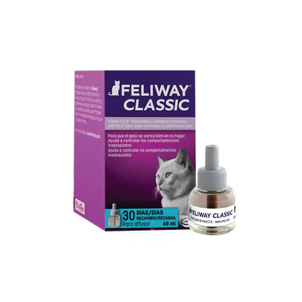 Feliway Classic tranquilidad y bienestar Recarga por 48 ml, mejora el comportamiento inadecuado en gatos