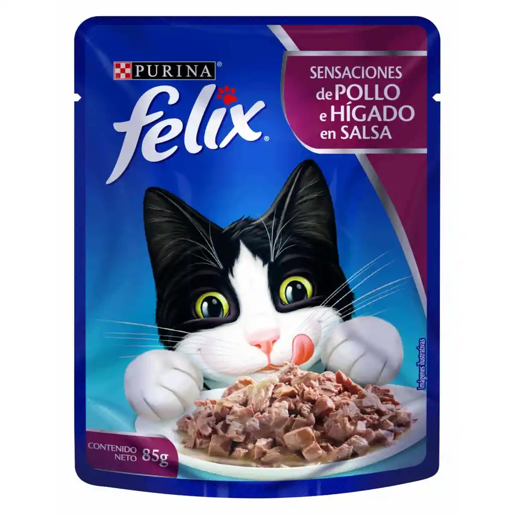 Delicioso alimento húmedo, completo y balanceado para gatos en desarrollo, compuesto por trocitos de pollo e higado en salsa, ideal para deleitar hasta al paladar gatuno más exigente.