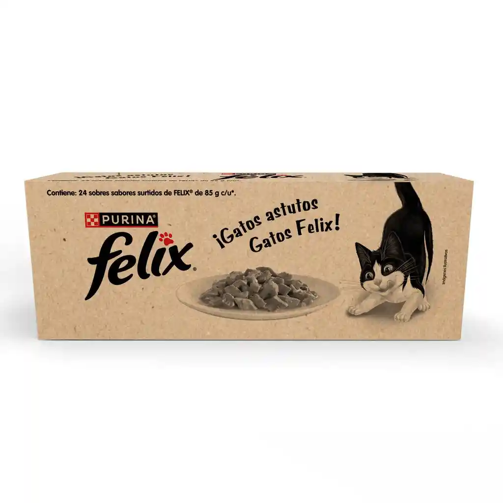 Producto importado | La comida húmeda Felix se caracteriza por su textura suave y jugosa, que es fácilmente aceptada por los gatos. Los sabores surtidos permiten a tu gato disfrutar de una variedad de comidas para evitar la monotonía en la dieta de tu gato y mejorar su apetito. La combinación de fibras naturales y una alta digestibilidad de los ingredientes asegura que tu gato tenga un sistema digestivo eficiente y saludable. Información del producto: Alimento húmedo completo o balanceado para gatos adultos de todas las razas, con actividad normal. Contiene proteína cruda min. 10%, cenizas max. 3%, fibra cruda max. 1.5%, grasa cruda min. 2%, humedad max. 82%, calcio min. 0.15%, fósforo min. 0.1% y taurina min. 0.05%.