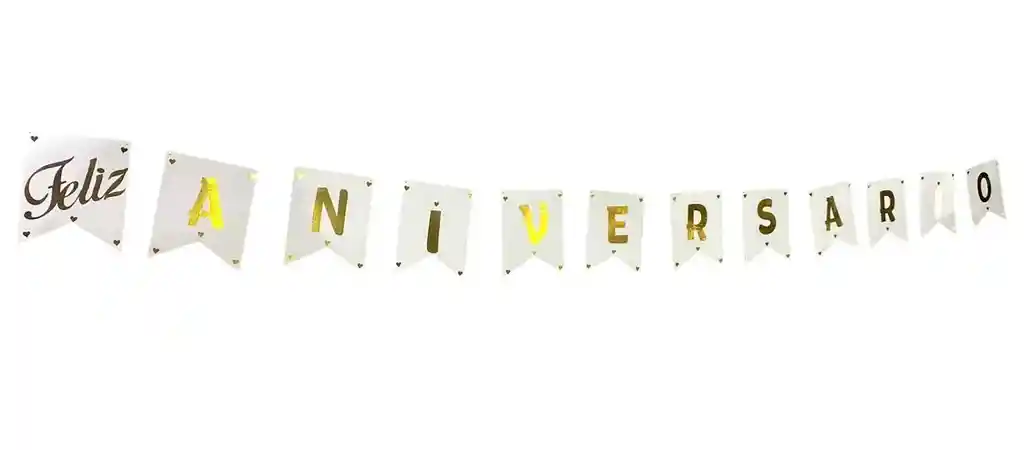 Feliz Aniversario Guirnalda Letrero En Cartón Blanco Letras Doradas