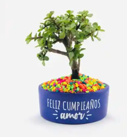 Feliz Cumpleaños Amor Monedario Matera Azul Piedras fucsia