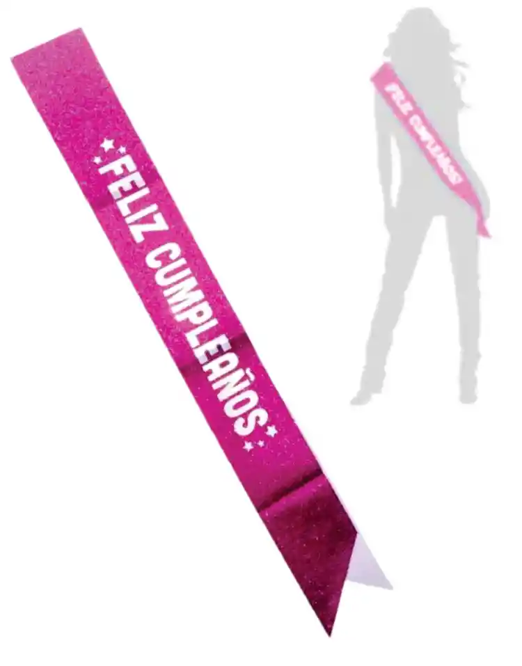 Fabulosa banda que se puede usar como accesorio festivo para celebrar cumpleaños y que la persona homenajeada se sienta especial. Se puede reutilizar si se da un buen manejo de la misma ya que su material es resistente. Color: Fucsia brillante.