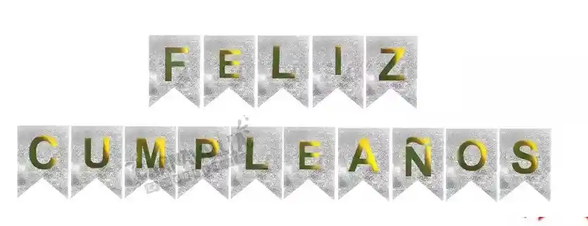 Letrero Guirnalda Feliz Cumpleaños Escarchada Pequeño Plateada con letras doradas 17 X 12 Cm