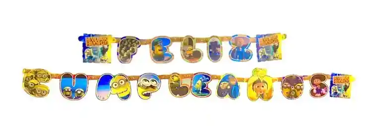 Letrero - Guirnalda Feliz Cumpleaños Niño MINIONS MI VILLANO FAVORITO