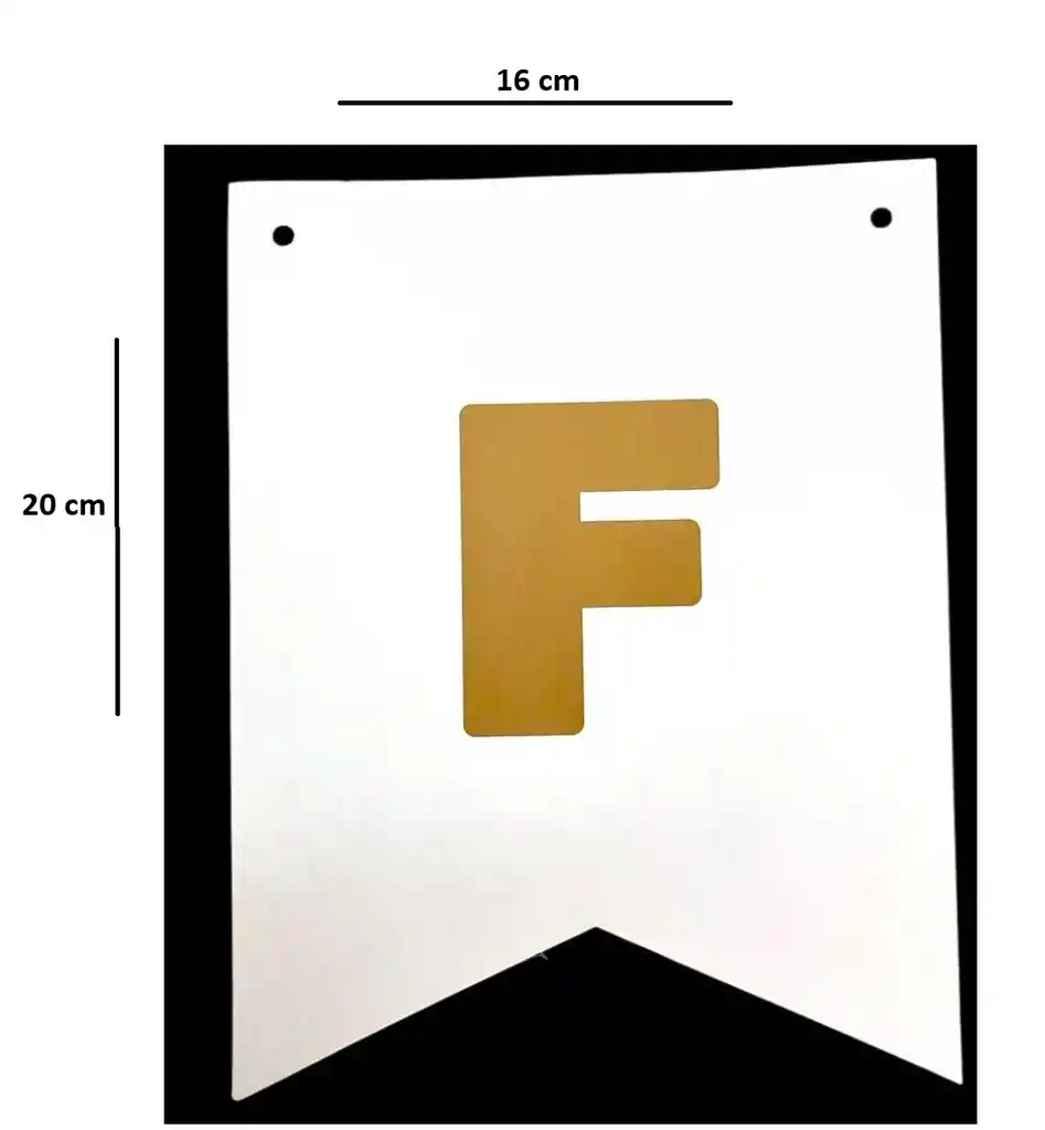 Feliz Cumpleaños Guirnalda Letrero Grande 20 X 16 Cm Blanco Letras Doradas