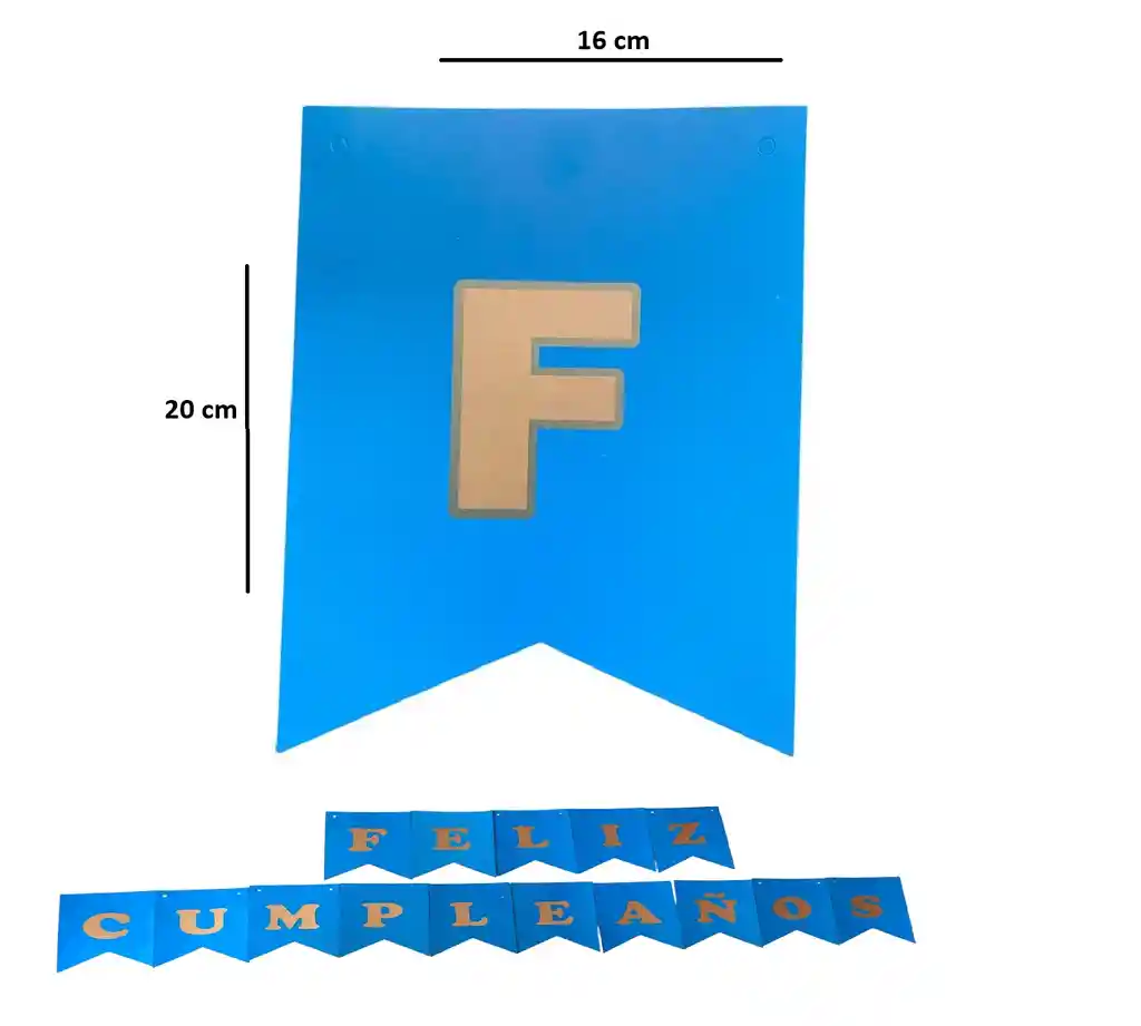 Feliz Cumpleaños Guirnalda Letrero Grande 20 X 16 Cm Azul Letras Doradas