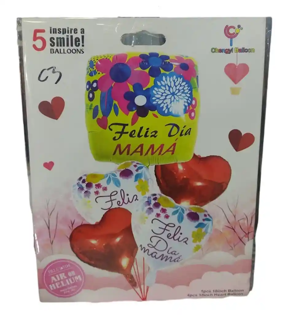 5 bombas metalizados 4 corazones 1 cuadrado estampado Se envia decoracion depende disponibilidad