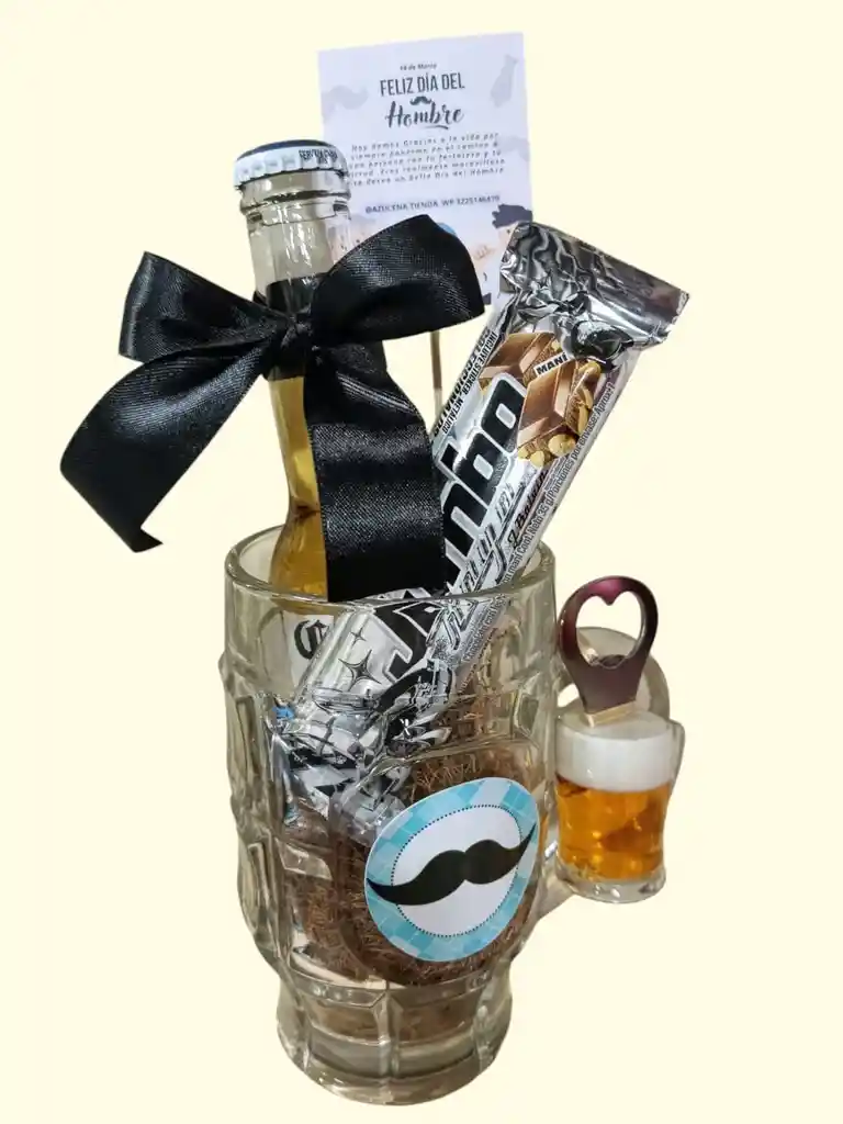 Feliz día del para él Jarra Cervecera (Cerveza coronita), regalo ideal para esos hombres especiales de tu vida, contiene Jarra cervecera de cristal, cerveza coronita, chocolatina jumbo mediana, destapador ( estilo vaso cervecero), tarjeta y decoración . Ideal para día del hombre, cumpleaños, amor, día del padre, día del contador, novios, aniversarios, SAN VALENTÍN