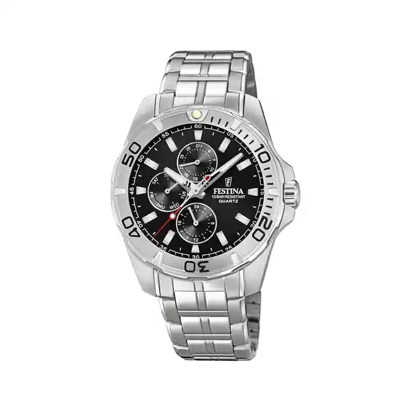 Color Plateado Material Acero Inoxidable Color Tablero Negro Material Cristal Mineral Tipo Análogo Forma Circular Tipo de Movimiento Cuarzo Tipo de Cierre Desplegable Ancho Banda 22 mm Largo Banda 220 mm Tono de Caja Plateado Material de Caja Acero Inoxidable Tamaño de Caja 43 Resistencia al Agua 100 m