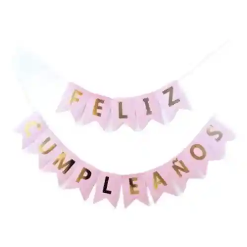 FESTON BANDERIN FELIZ CUMPLEAÑOS MATE COLOR ROSADO, LETRA A LETRA