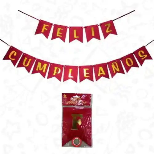 FESTON FELIZ CUMPLEAÑOS METALIZADO COLOR ROJO LETRA A LETRA