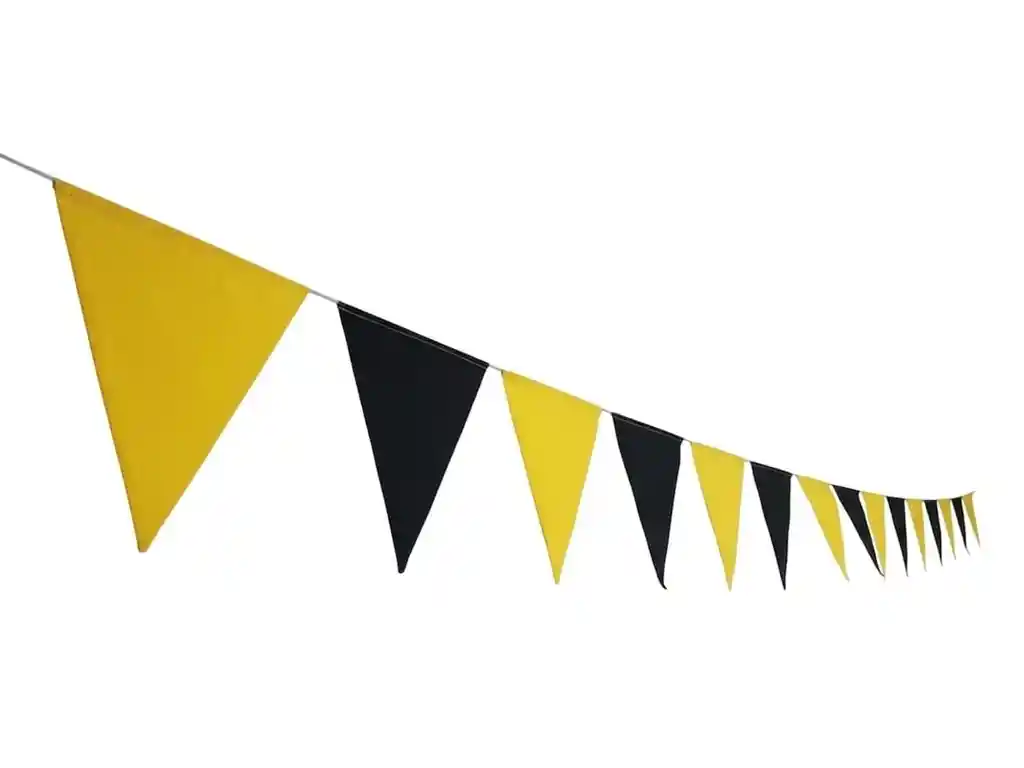 FESTON TRIANGULAR COLOR AMARILLO Y NEGRO DE 15 MTS DE LARGO