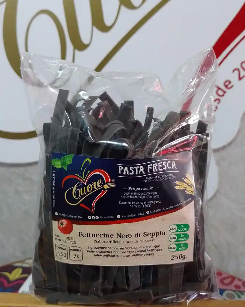 Elaborada con sémola de trigo durum y harina de trigo fortificada, nuestra pasta fresca con tinta de sepia ofrece una textura perfecta, un sabor auténtico y un característico color oscuro que realza cualquier plato. Lista en solo 7 minutos de cocción, es ideal para preparar comidas rápidas sin sacrificar calidad.