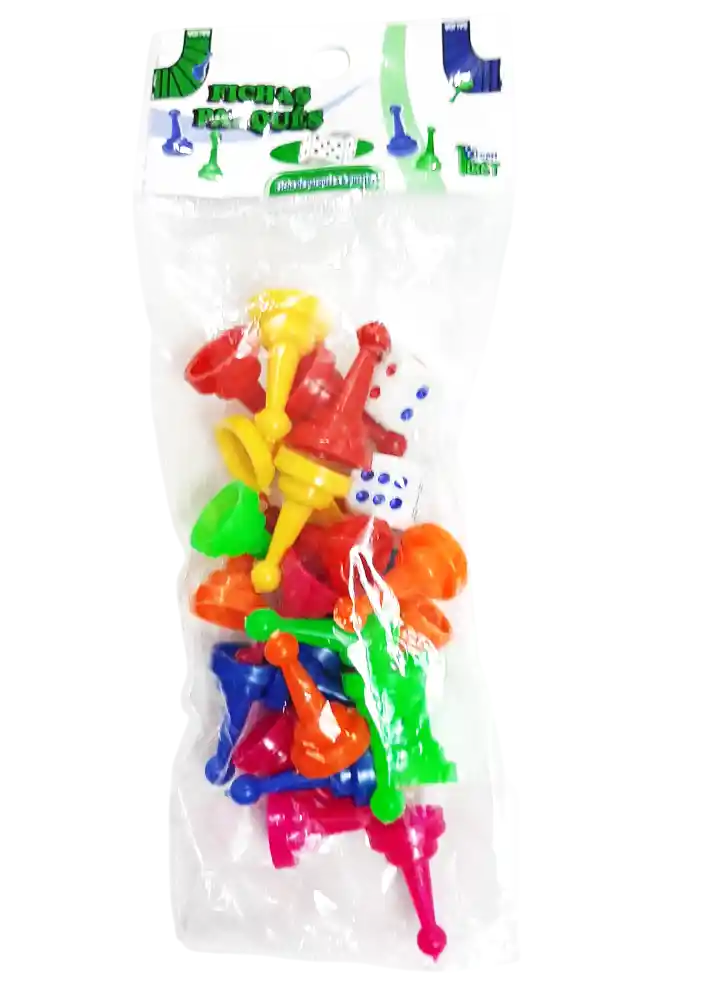 Juego de fichas para parques de 6 puestos. Incluye colores variados para cada jugador. Ideal para partidas familiares o con amigos