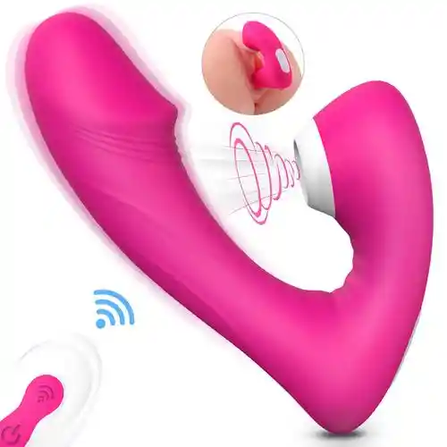 Succionador clítorial y estimular del punto G. Combina sus dos funciones y activa sus 9 ritmos de vibración para disfrutar de unos poderosos toques en el punto G y un succión intensa y placentera.Características:Largo: 10.4 cmsAncho succionador: 2 cmsGrosor: 3.5 cmsModos de succión: 9Resistente al aguaControl remoto: Distancia 5 a 10 metros