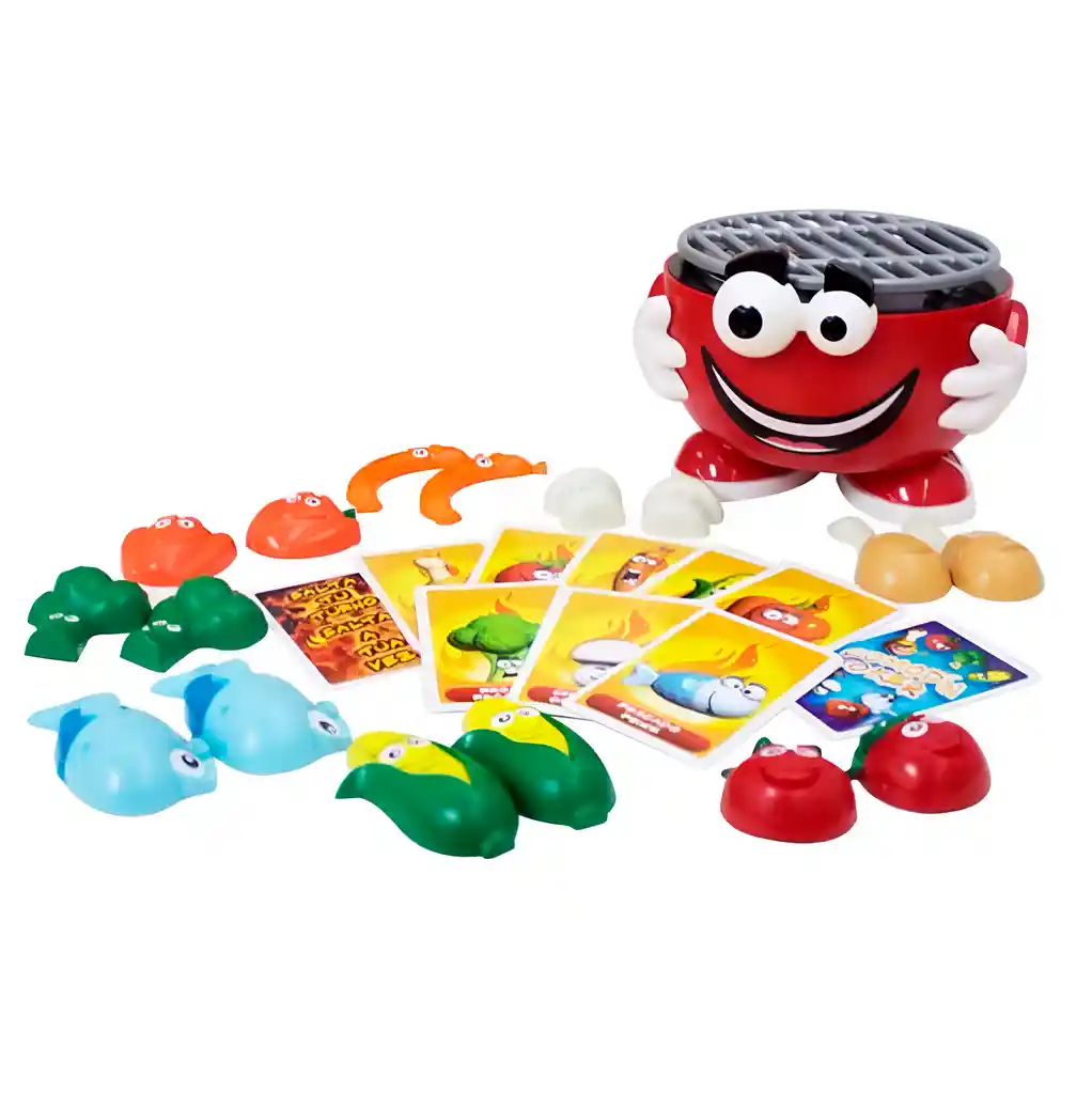 Prepara tu mejor asador para esta divertida competencia! En "Fiesta BBQ", tendrás que cocinar pescados, carnes y vegetales en una parrilla muy especial que puede hacer saltar los alimentos en cualquier momento. Saca con cuidado los alimentos de la parrilla según la tarjeta que te toque, ¡pero ten mucho cuidado! La parrilla es impredecible y podría saltar en cualquier momento. El primer jugador en conseguir tres alimentos será el ganador. ¡Diversión garantizada para toda la familia! Ficha Técnica: Dimensiones del empaque: 27 cm x 27 cm x 12 cm Material: Plástico ABS No toxico Edad Recomendada: +4 Años Certificado de conformidad: E5-0359-2021 Referencia:8711808306387 Para defectos de fábrica o retractos: Por favor revise el producto apenas lo reciba y antes de usarlo. No aplican ley de retracto o defectos de fábrica luego de usar el producto. Se manejan máximo 5 días para reportar defectos de fábrica (por ejemplo, producto funciona mal, piezas faltantes, rotas, etc). Para hacer efectiva la devolución el producto debe devolverse con el empaque original, el cual debe estar en buen estado, incluir todos los documentos y las partes completas y sin daños.